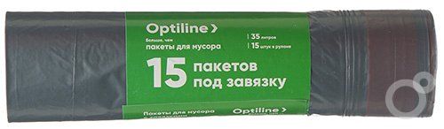Пакеты для мусора 35л, 15шт Optiline, с завязками, ПВД толстые черные 25мкм/ 25