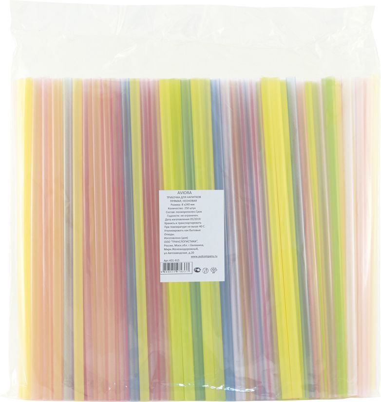 Трубочки 8*240мм прямая неоновая. AVIORA 250шт/23уп